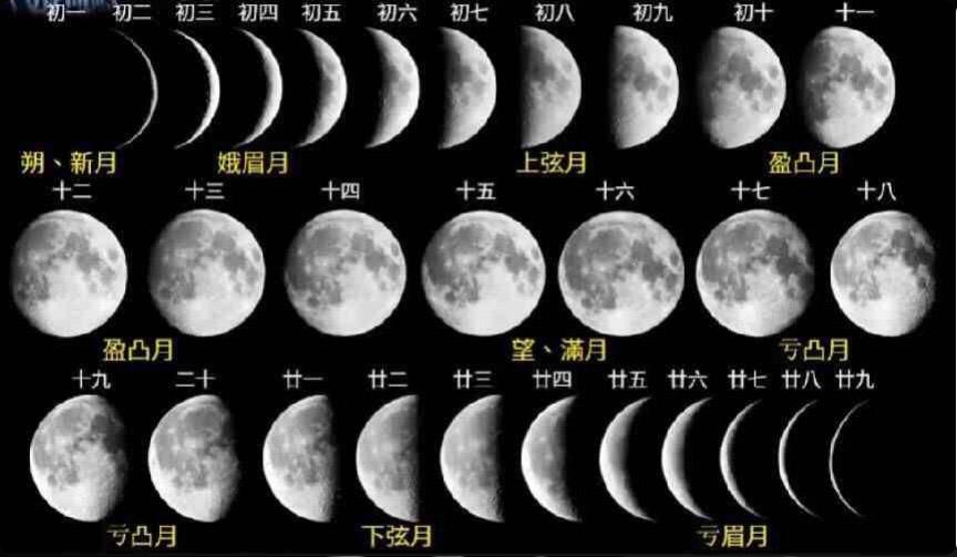 - 朔望月:从一次新月到下一次新月的时间(29.5天)。