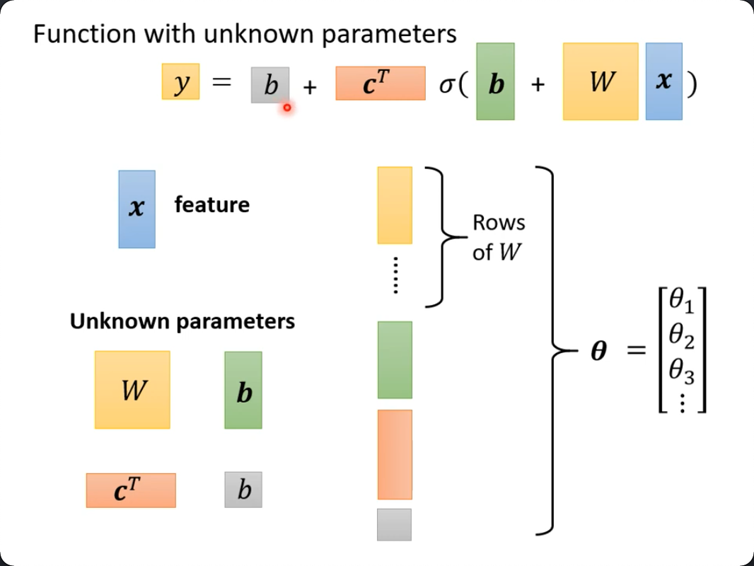 至此,一个简单的对b,w依赖的函数变成了对()和, x, b的依赖,即多了很多变量。