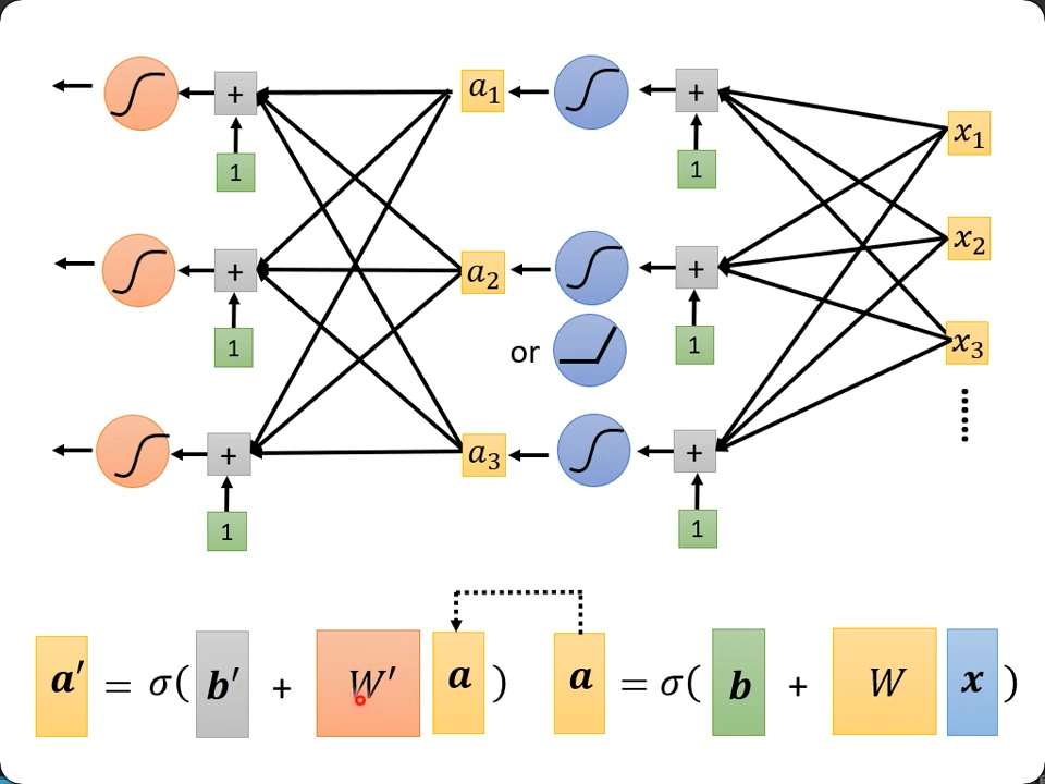 把每一个a当成之前的x,我们可以继续套上新的w,b,c等,生成新的a->a'