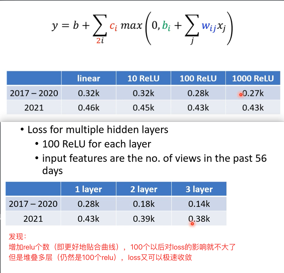 - 过大的loss通常“暗示”了模型不合适(model bias),比如上面的用前1天数据预测后一天,可以尝试改成前7天,前30天等。
