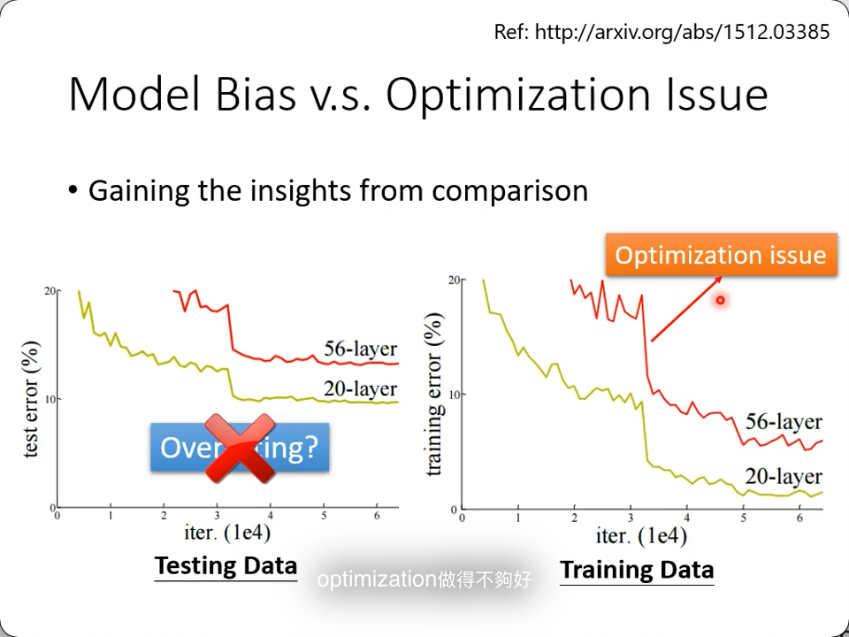 这是什么问题?其实是optimization的问题,后面会用一些方法来解决。