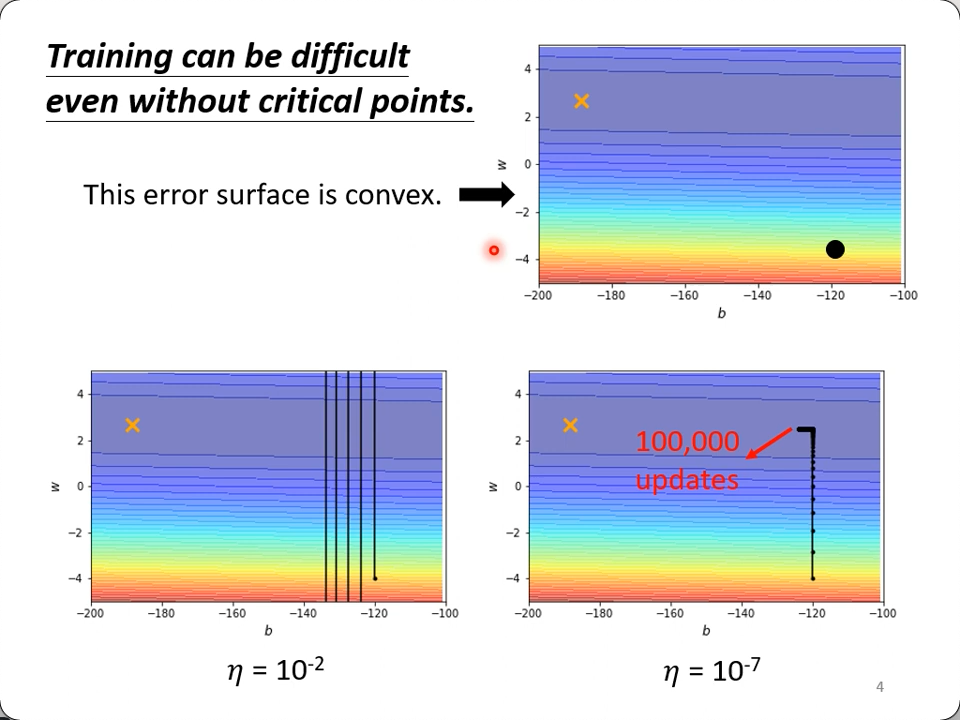 - 小batch虽然快,但是它非常noisy(及每一笔数据都有可能是个例,没有其它数据来抵消它的影响)
