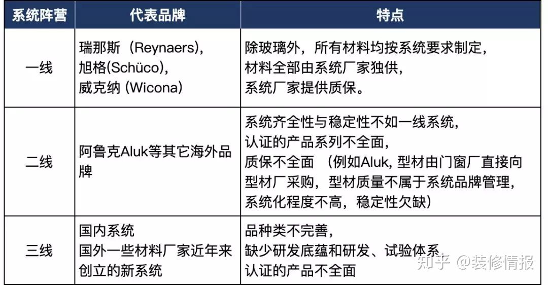 说到系统门窗,就不得不提几个国外比较专业的系统公司,比如旭格(德)、海德鲁(挪)、阿鲁克(意)、YKK(日)等。(这里与上面贴图提到的几个品牌就不一致了,自己判断)