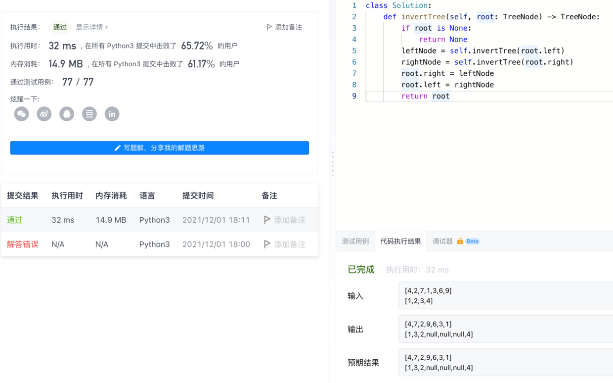 left, right = right, left,前面是为了稳妥,通过了之后,直接用python这种左右互换的特性,那就真是一句代码了: