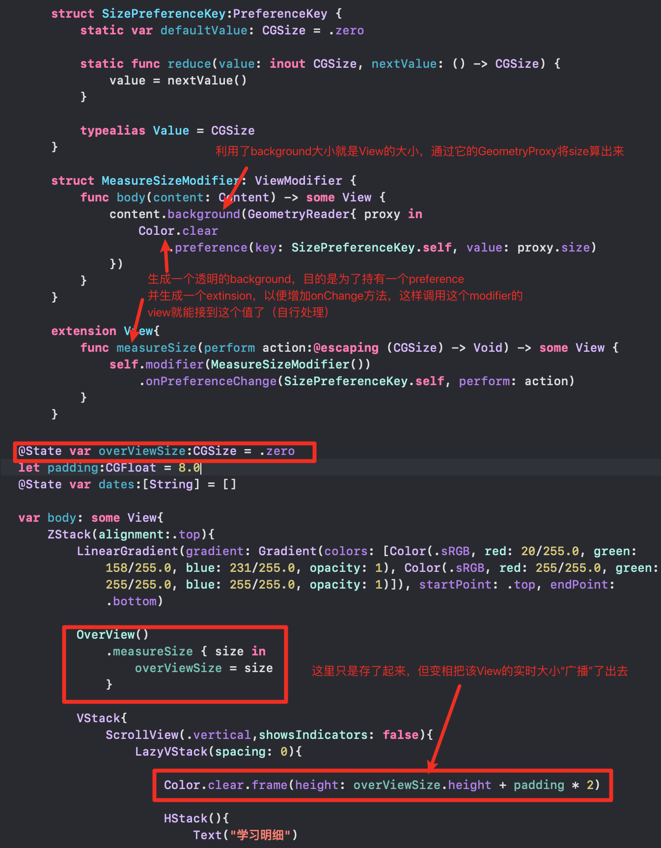 * see more [https://swiftwithmajid.com/2020/01/15/the-magic-of-view-preferences-in-swiftui/](https://swiftwithmajid.com/2020/01/15/the-magic-of-view-preferences-in-swiftui/)