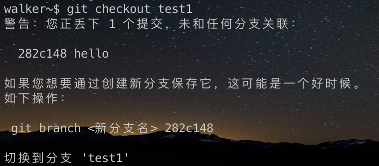 HEAD上做的 此时你再切换分支,这个commit是会被丢弃的(看警告文字),测试结果也是切走再切回原分支,这个hello的commit确实不在了