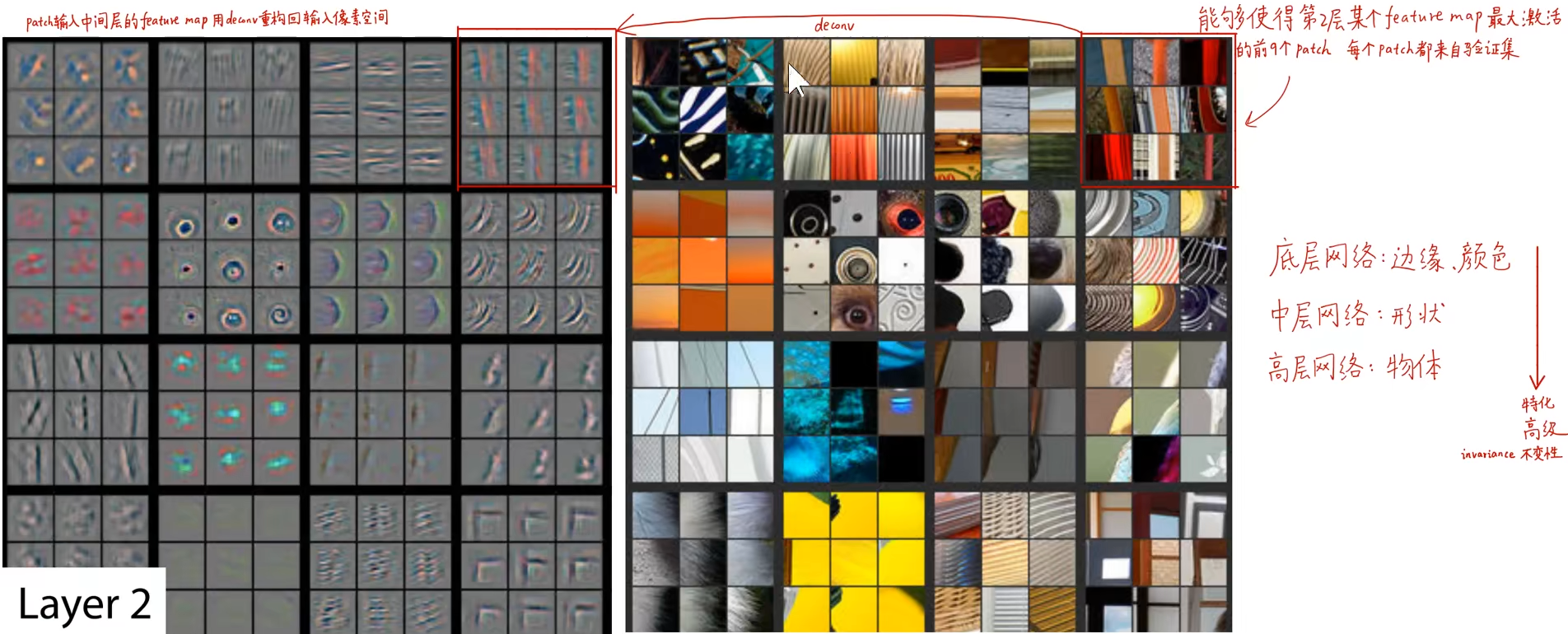 先找到对某个卷积核激活最大化的原图块,再应用(反?)卷积,把它可视化出来,就能知道这个卷积核提取的是什么特征,有个类似的项目